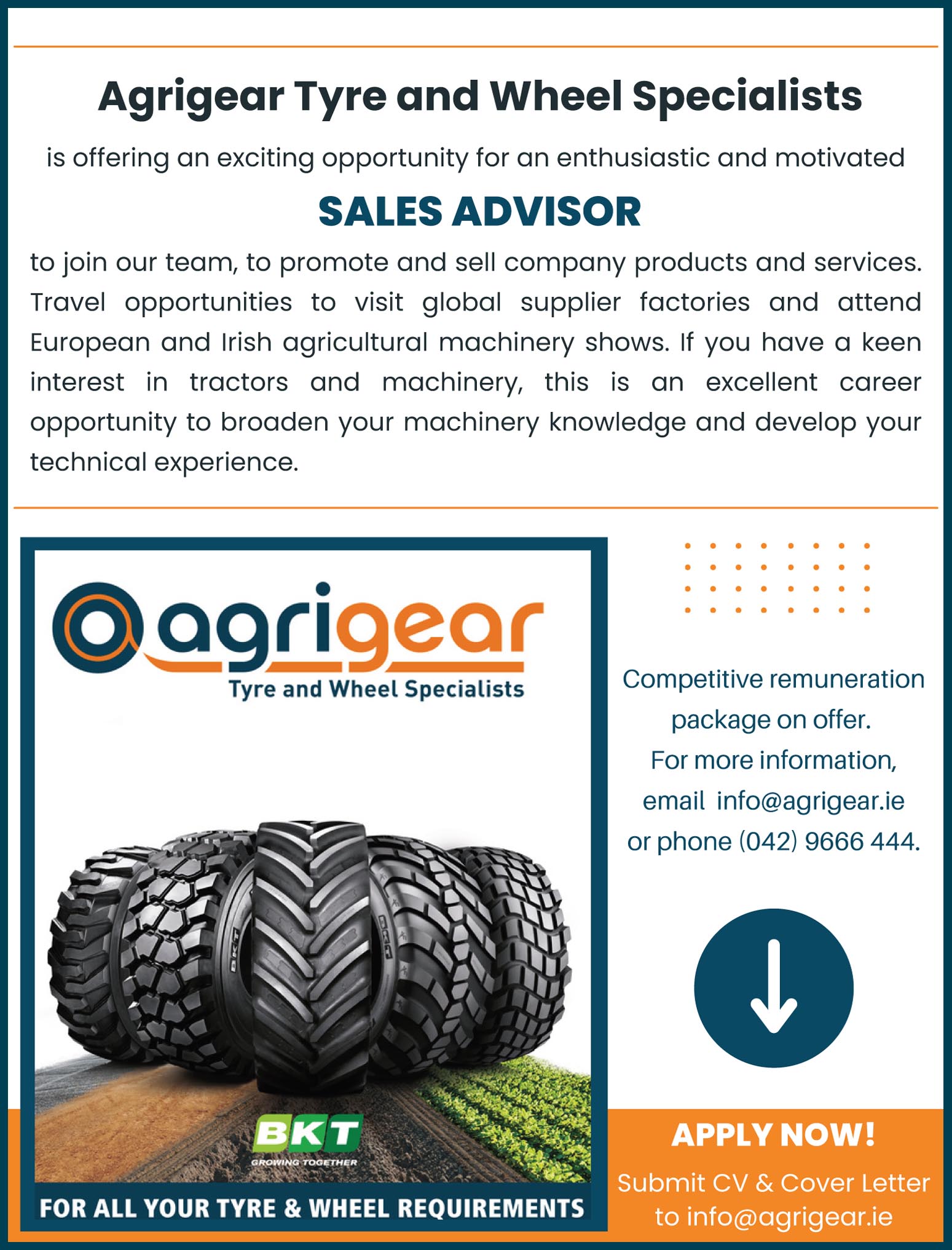 To express an interest in joining our team, please forward CV and Cover Letter to info@agrigear.ie.