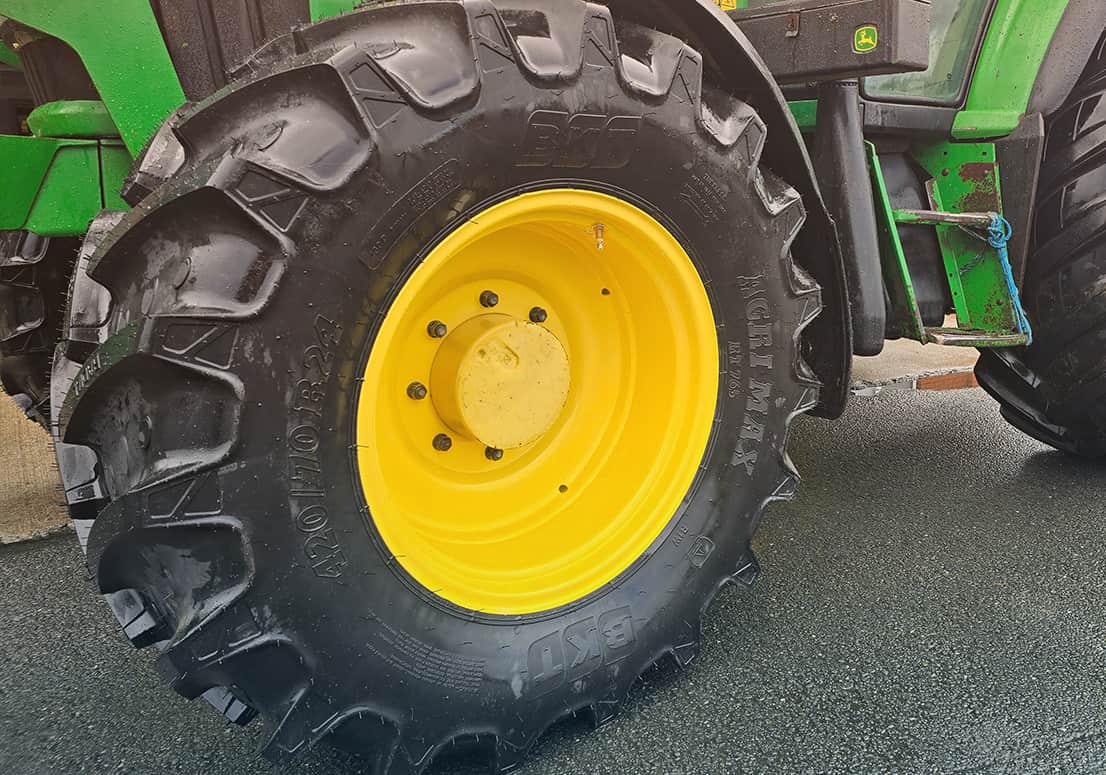 The Story: The rims on this John Deere 6330 were in poor condition, showing significant rust. We stripped the wheels back to bare metal using shot blasting to ensure a clean surface, then finished them with a durable powder coat in John Deere Yellow. As the existing front tyres were worn, the customer also requested a replacement. We supplied and fitted new 420/70R24 BKT Agrimax RT 765 tyres to the freshly restored rims to complete the upgrade.