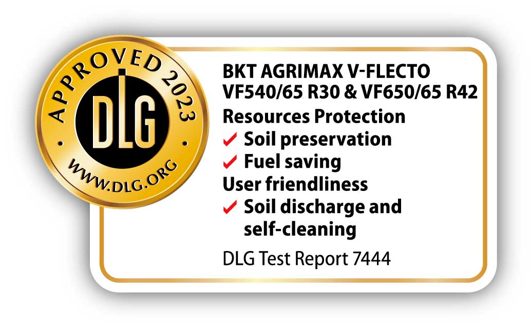 VF (Very High Flexion) essentially means that the tyre can flex more. VF tyres are made from a special compound which means the sidewalls can flex. To do this, VF tyres need extra strong casings which allows them to flex in the right place, close to the tyre tread rather than the bead. With this flexing, the tyre footprint grows which effectively spreads the load over a greater area and reduces the possibility of soil compaction.